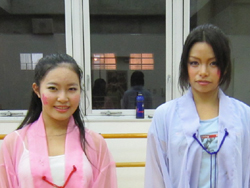 | 第3回 稲の神様役と木花咲耶姫様役の舌間さんと満咲ちゃんにいくつか質問しました! (左:満咲ちゃん、右:舌間さん) Q: 作品名「さくらのうた」ですが、”さくら”と聞いて思い浮かぶ物やエピソードはありますか? 舌間さん: 春が来た!うきうきした気持ちになります、花見が思い浮かび酔っ払いたいです(笑) 満咲ちゃん: ”さくら”といったら・・・うきうきして楽しくなります Q: 「さくらのうた」ミュージカルは日本劇ですが、初めて日本劇をすると聞いてどう思いましたか? 舌間さん: 「おーとうとう来た!やるのか」っと思いました 満咲ちゃん:和風なものが好きだったので、すごく楽しみに思っています Q: 今回、さくらの神様の役についてどう思いますか? 舌間さん: すごい自分にあった役なので、楽しみたいです 満咲ちゃん: 和風のお姫様、豪華でかわいくて、なんていうかな・・・憧れます Q: 稲の神様についてどう思いましたか? 満咲ちゃん: ボケていて面白いです(笑) Q: 木花咲耶姫様についてどう思いましたか? 舌間さん: かわいい、着物はいいなぁと思いました Q:最後に見所など一言お願いします 舌間さん: たくさんの人に見てもらいたいです、今までなかった新しいことに挑戦してますので楽しんでもらえたらいいなぁと思います 満咲ちゃん: 見所は、日本舞踊みたいな踊りをする所と、初めての扇さばきを見てもらいたいです 一生懸命がんばって大成功させたいので、最後まで見てください! 舌間さん、満咲ちゃん質問に答えていただきありがとうございました! |